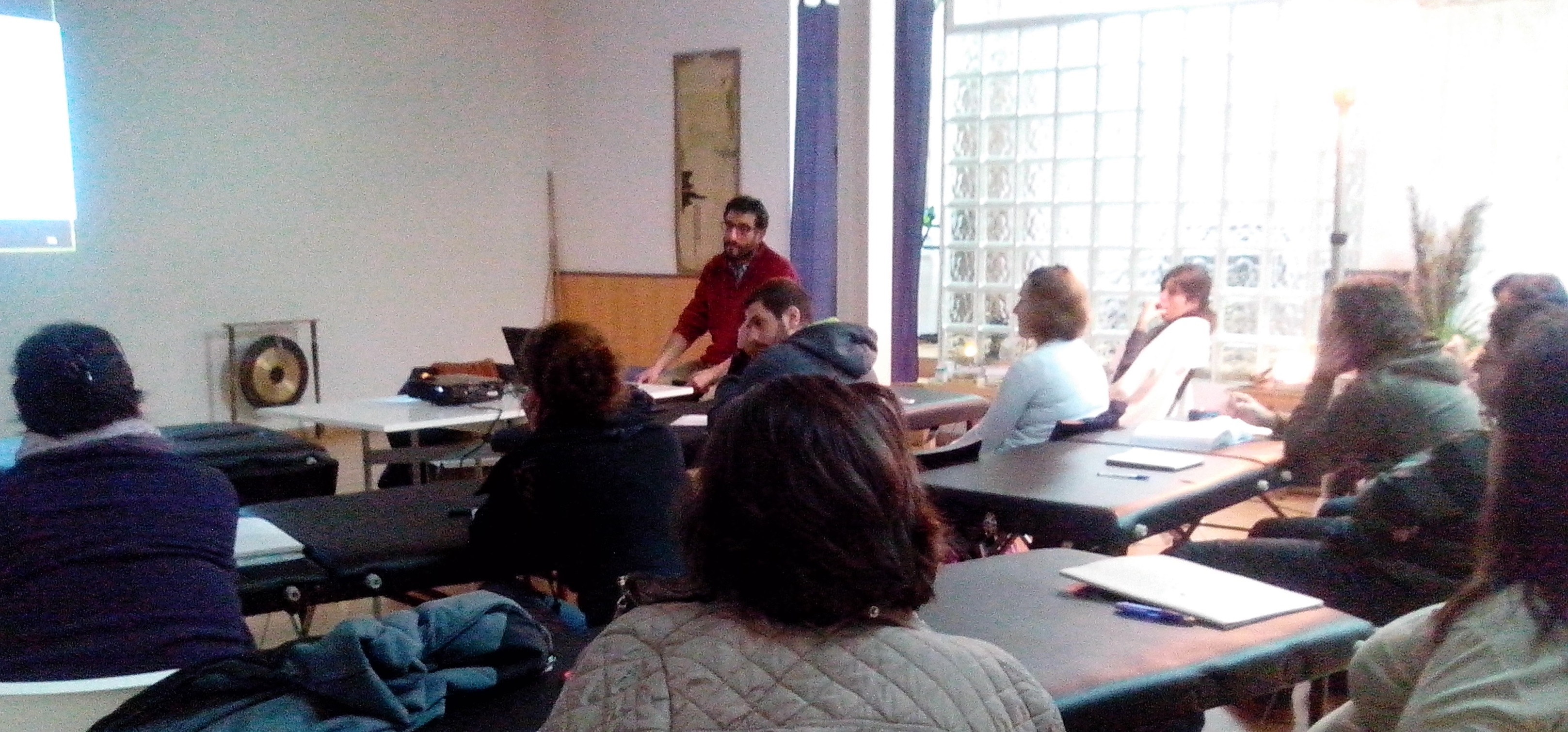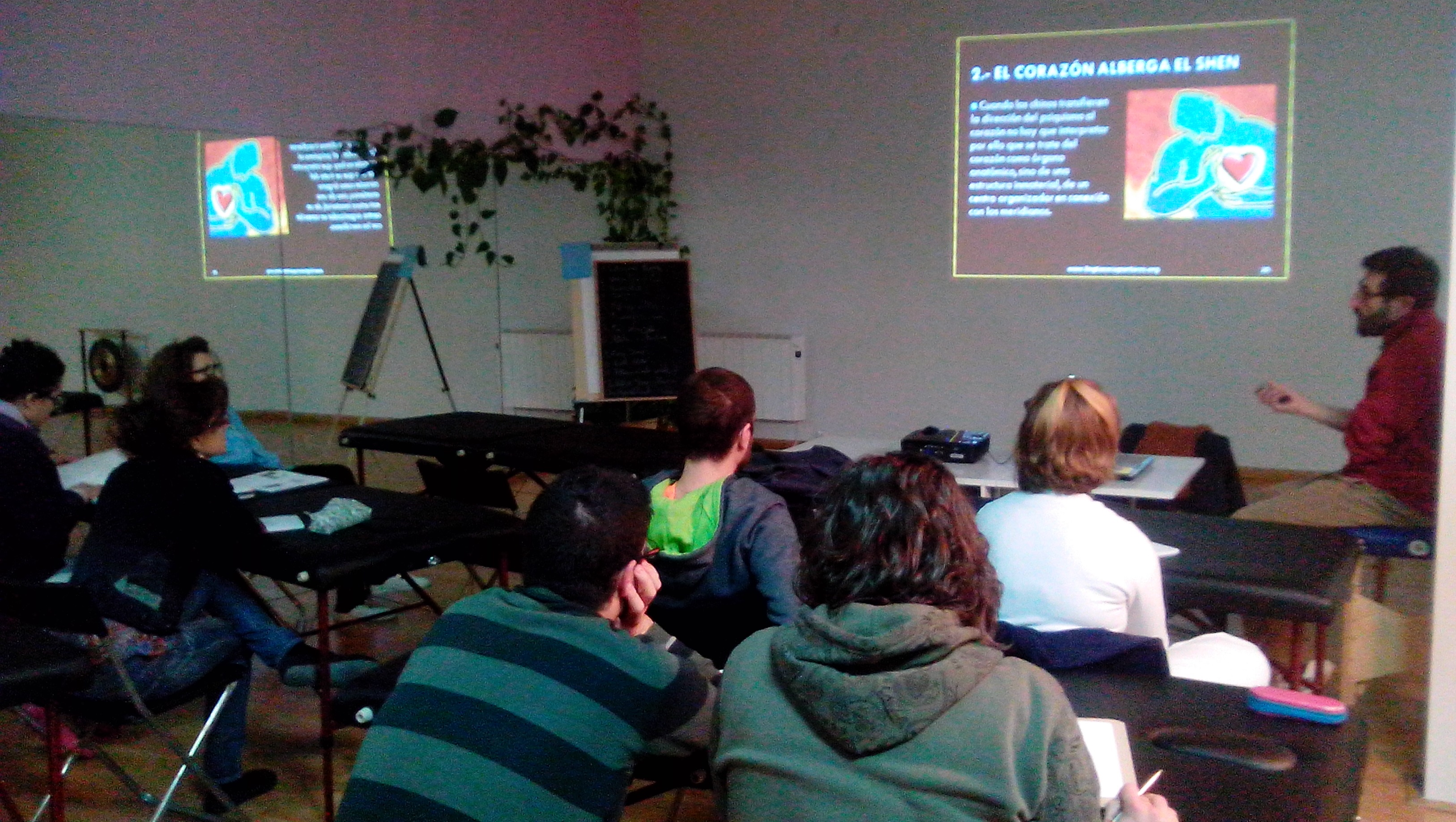 Punturado Ganshu, Hunmen. Localizando Feishu, Pohu, Xinshu, Shenntang…I CHING. Como solemos apuntaros, aquí todo el mundo es bienvenido. Tanto principiantes como alumn@s de otras escuelas, profesionales…en la foto, una alumna del grupo de estudio de MTC de primero (GRUPO QI) que ya fue formada anteriormente como acupuntora en la Escuela de MTO de Tian, realiza una interesante aportación sobre el I Ching…
