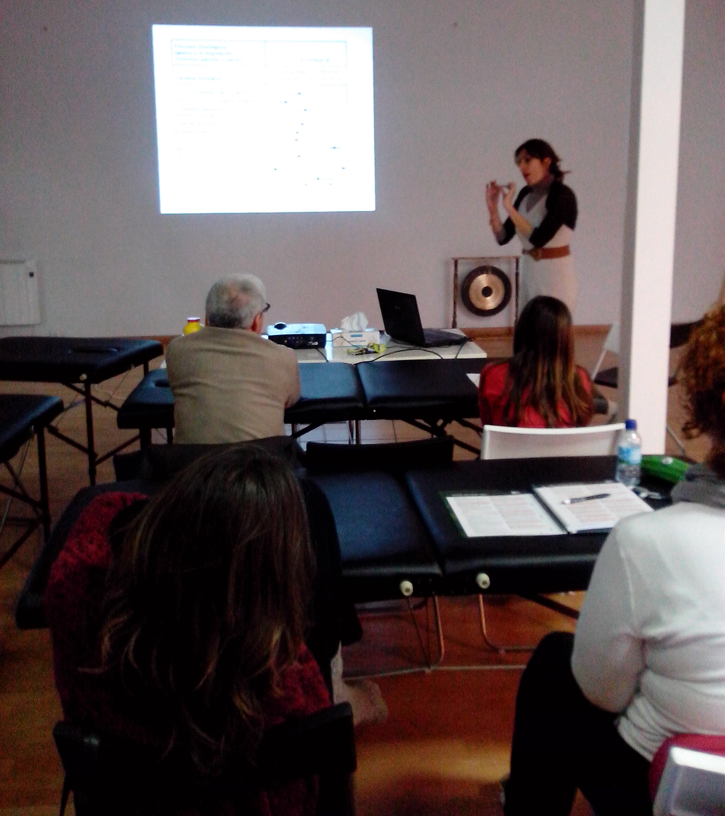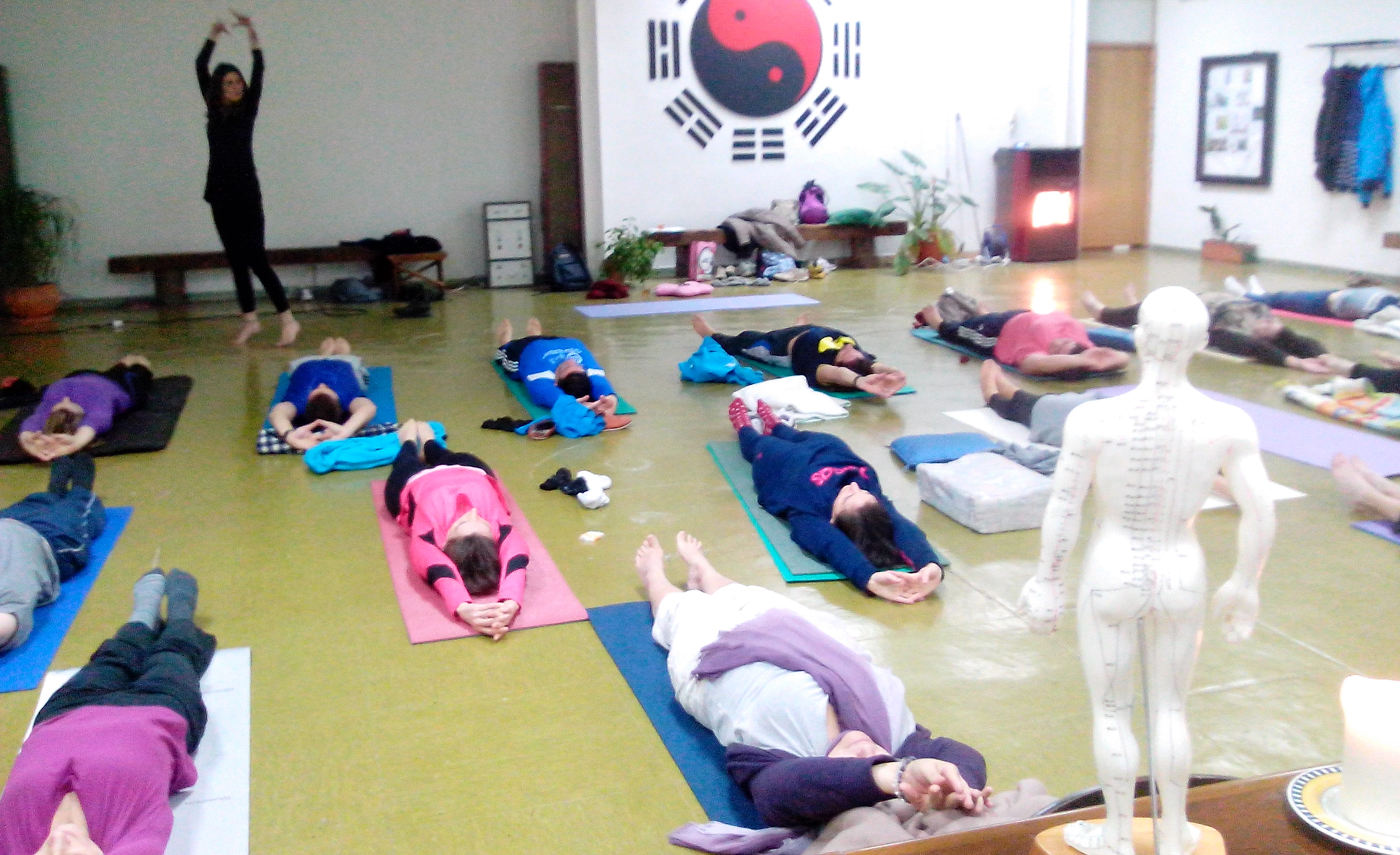 El Qi Gong es en definitiva un Yoga. Toda Medicina Holistica y Tradicional que se precie…tiene su Yoga. Nosotros profundizamos en la práctica y teoría del Qi Gong en la Medicina Tradicional China. En la foto observais un enriquecimiento de las experiencias en el curso gracias a la participación y aporte de los alumn@s asistentes. Gracias a Patricia (alumna del grupo de trabajo «Qi» de MTC) realizamos una pequeña practica de HATA YOGAÁngeles Infantes, Fundadora y Directora de Ling Tao Acupuntores…nunca pierde la oportunidad de participar en las clases…Esta Escuela lo tiene muy claro, aquí no hay Gurus ni grandes maestros…lo importante es propiciar un lugar de encuentro, que favorezca el diálogo, la discusión y el intercambio de saberes…aunque en este caso, por supuesto tenga como dominante LA MEDICINA TRADICIONAL ORIENTAL